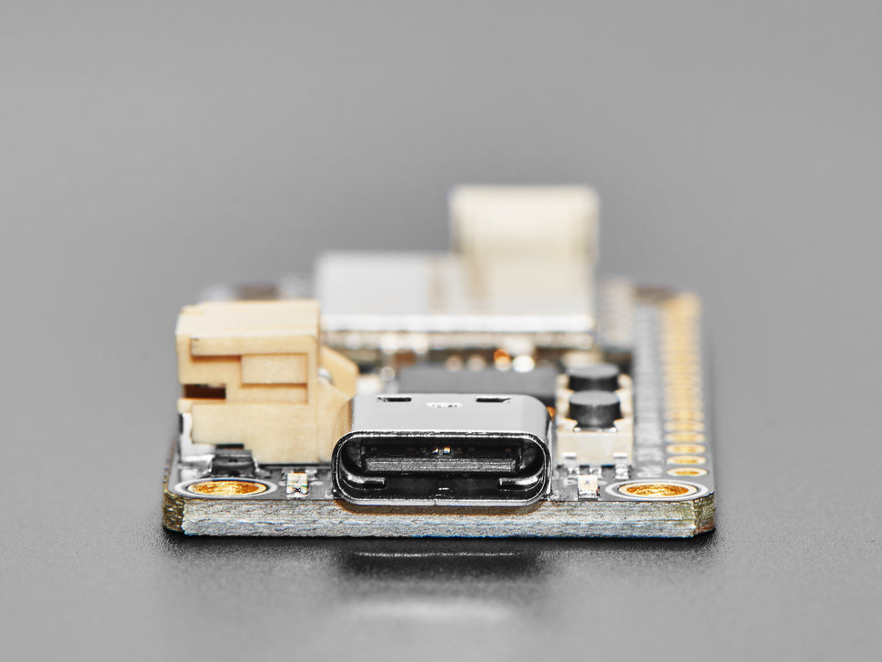 To make it easy to use for portable projects, we added a connector for any of our 3.7V Lithium polymer batteries and built-in battery charging. You don't need a battery, it will run just fine straight from the USB Type C connector. But, if you do have a battery, you can take it on the go, then plug in the USB to recharge. The Feather will automatically switch over to USB power when it's available.