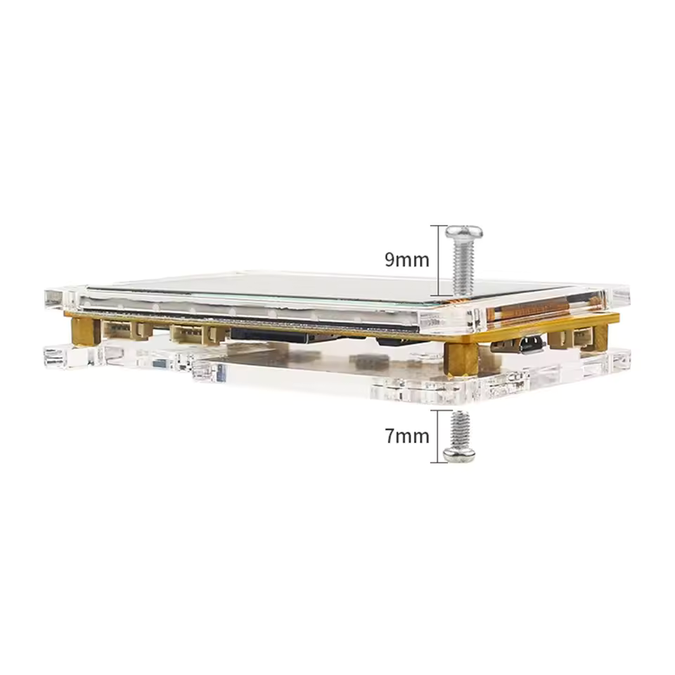 The transparent acrylic panels provide a clear view of the display and internal components, making it perfect for projects, demonstrations, or long-term setups. Assembly is quick and secure using the included screws and spacers.