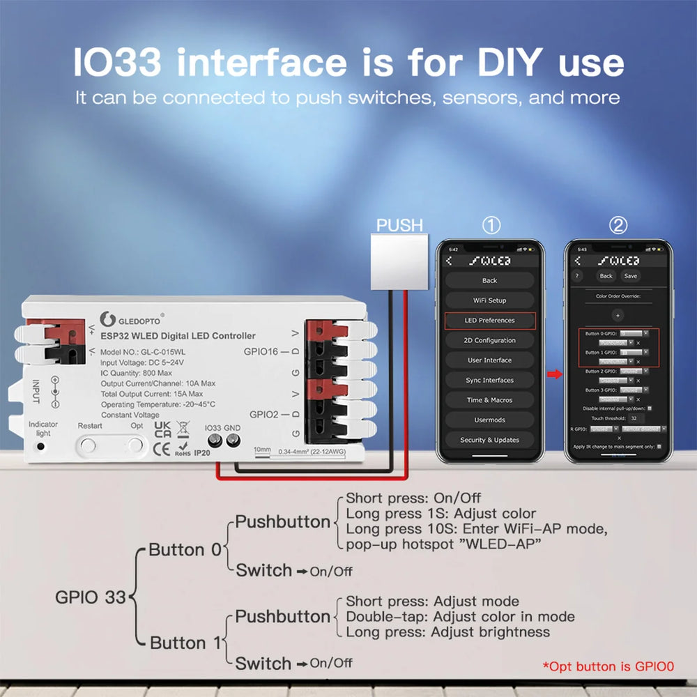 ESP32 WLED Dual Addressable LED Controller With Microphone - GLEDOPTO